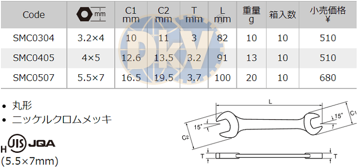 CỜ LÊ ASAHI SMC0304 | CỜ LÊ MIỆNG HỞ ASAHI SMC0304 | ASAHI DOUBLE OPEN ENDED SPANNERS SMC0304 | 3.2 x 4 mm