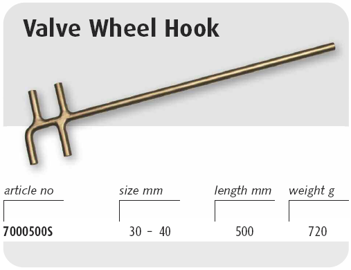 - Cờ lê Valve chống cháy nổ Endres 7000500S, Cờ lê valve chống tia lửa điện Endres 7000500S, Endres non sparking valve hook 7000500S có quy cách Ø 30 x 40 mm, chuyên dùng tháo/lắp cánh valve trong môi trường có tính cháy nổ cao.