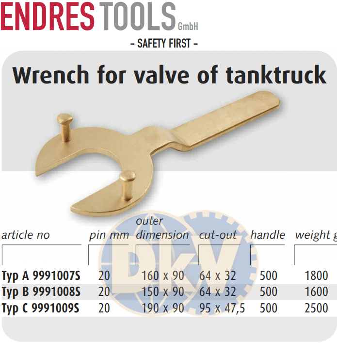 - Cờ lê Valve chống cháy nổ Endres 9991008S được sản xuất và chế tạo bởi Endres/Đức. Made in Germany.