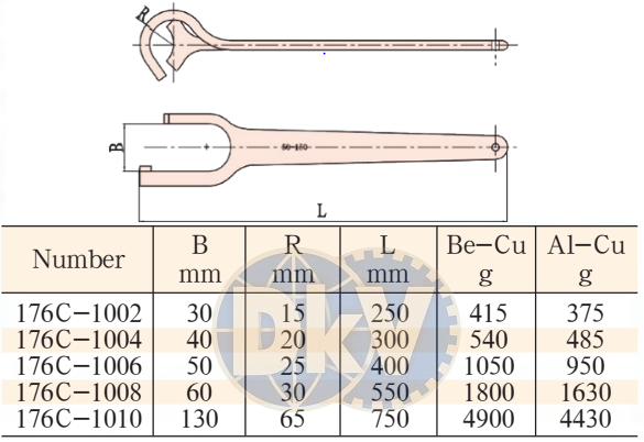 - Cờ lê Valve chống cháy nổ X-Sparks 176C-1002 được chế tạo từ hợp kim đồng/beri (Cu Be) hoặc đồng/nhôm (Al/Br), tuyệt đối không gây ra tia lửa điện trong môi trường phòng chống cháy nổ.