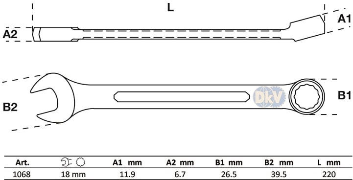 - Cờ lê BGS 1068, cờ lê miêng hở/tròng BGS 1068, BGS combination spanner 1068: thuộc dạng cờ lê một đầu miệng hở, một đầu tròng, cùng size: 18 mm, chiều dài: 220 mm, chuyên dùng để siết bulong, đai ốc trong công nghiệp.