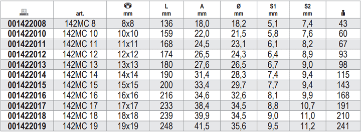 - Cờ lê vòng miệng Beta 142MC 10 có quy cách cơ bản: chiều dài (L = 159 mm), trọng lượng: 60 gram. Đóng gói hộp carton tiêu chuẩn của hãng Beta/Italy.