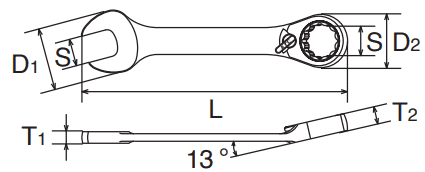 - Cờ lê vòng miệng KTC MSR2SA-12 chế tạo bằng thép cường lực, có độ dai va đập cao, trang bị cơ cấu đảo chiều siết dạng tay gạt.