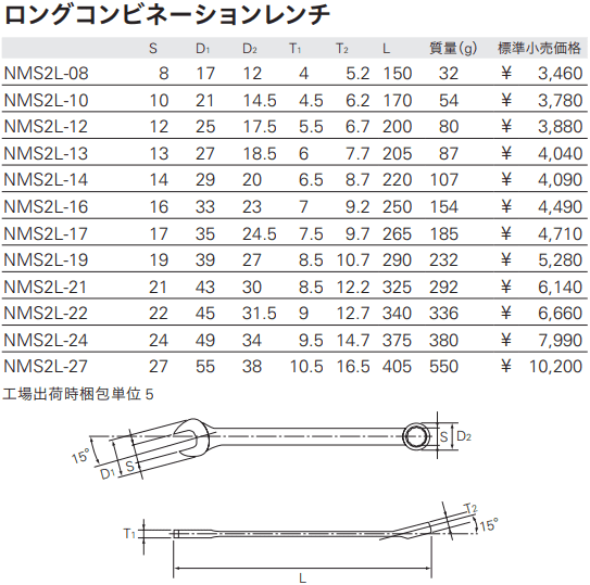 - Cờ lê KTC NMS2L-08, cờ lê vòng miệng KTC NMS2L-08, KTC combination spanner NMS2L-08: thuộc dạng cờ lê hai đầu(1 đầu miệng hở, 1 đầu tròng, size: 8 mm, chiều dài: 150 mm), chuyên dùng để siết bulong, đai ốc trong công nghiệp.