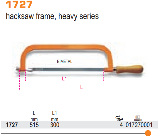 CƯA TAY BETA 017270001 | BETA HAND HACKSAW FRAMES 017270001 | 515 mm