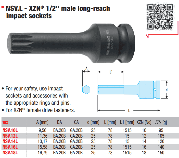 - Khẩu chụp bulong Facom NSV.18L, đầu chụp bulong Facom NSV.18L, Facom impact socket NSV.18L là loại đầu khẩu công nghiệp 6 cạnh, chuyên dùng để siết bulong, có size đầu vào vuông 1/2", size đầu ra 18 mm. Đầu chụp bulong Facom NSV.18L được chế tạo từ thép đen cường lực có độ dai va đập cao.