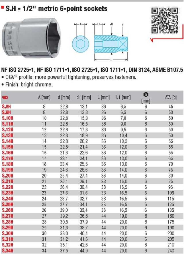 - Khẩu trắng 6 cạnh ngắn Facom S.14H thuộc dạng đầu khẩu cơ bản, dạng ngắn có chiều dài: 36 mm. Sử dụng phổ biến cho các thiết bị siết tay, hoặc súng siết có xung lực va đập nhỏ.