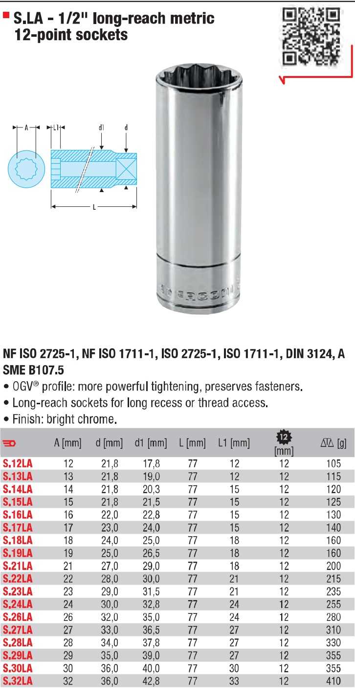 - Khẩu trắng 12 cạnh dài Facom S.14LA thuộc dạng đầu khẩu cơ bản, dạng dài có chiều dài: 77 mm. Sử dụng phổ biến cho các thiết bị siết tay, hoặc súng siết có xung lực va đập nhỏ.