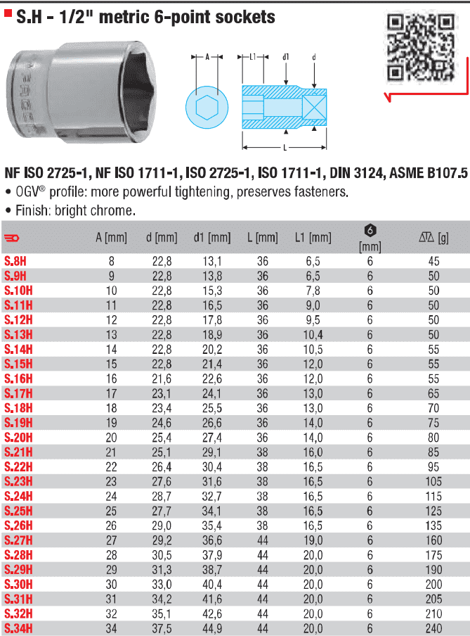 - Khẩu trắng 6 cạnh ngắn Facom S.27H thuộc dạng đầu khẩu cơ bản, dạng ngắn có chiều dài: 44 mm. Sử dụng phổ biến cho các thiết bị siết tay, hoặc súng siết có xung lực va đập nhỏ.