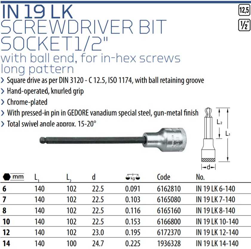 KHẨU CHỤP BULONG GEDORE IN 19 LK 10-140 | ĐẦU CHỤP BULONG GEDORE IN 19 LK 10-140 | 1/2" | 10 mm