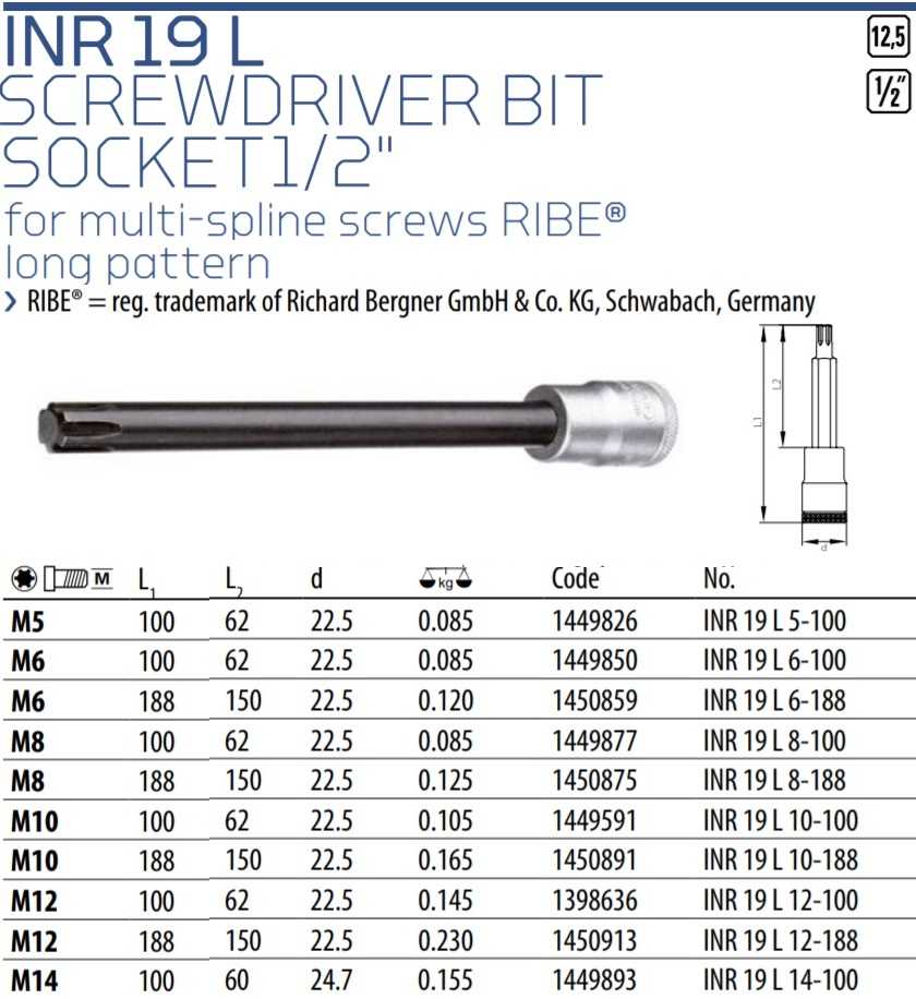 - Khẩu trắng INR 19 L 6-188 thuộc dạng đầu khẩu cơ bản, dạng dài, có chiều dài: 188 mm. Sử dụng phổ biến cho các thiết bị siết tay, hoặc súng siết có xung lực va đập nhỏ.