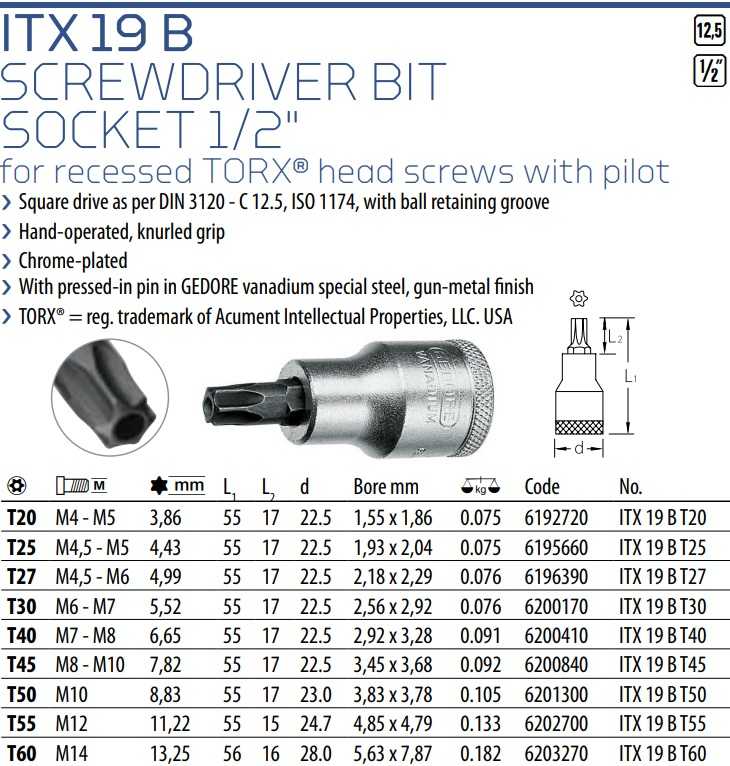KHẨU CHỤP BULONG GEDORE ITX 19 B T30 | ĐẦU CHỤP BULONG GEDORE ITX 19 B T30 | 1/2" | T30