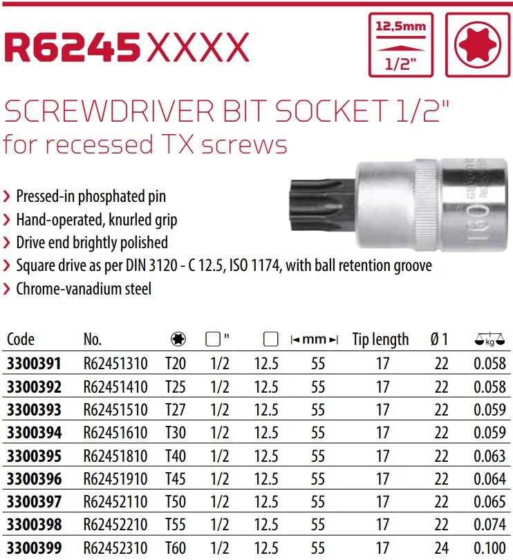 KHẨU CHỤP BULONG Gedore Red R62451810 | ĐẦU CHỤP BULONG Gedore Red R62451810 | 1/2" | T40