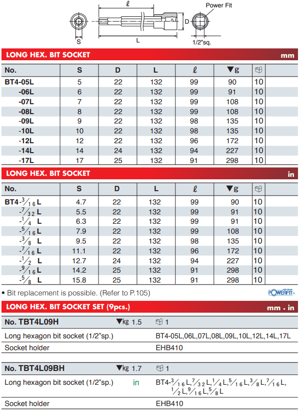 - Khẩu trắng cắm vít đầu lục giác KTC BT4-06L thuộc dạng đầu khẩu cơ bản, dạng ngắn, có chiều dài: 132 mm. Sử dụng phổ biến cho các thiết bị siết tay, hoặc súng siết có xung lực va đập nhỏ.