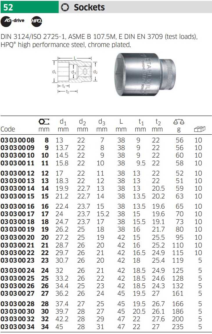 - Khẩu trắng 6 cạnh ngắn Stahlwille 03 03 00 10 thuộc dạng đầu khẩu cơ bản, dạng ngắn có chiều dài: 38 mm. Sử dụng phổ biến cho các thiết bị siết tay, hoặc súng siết có xung lực va đập nhỏ.