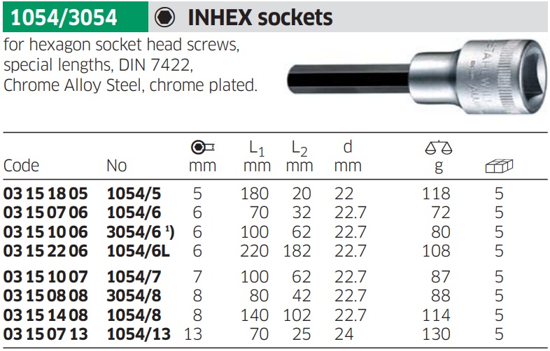 - Khẩu trắng 6 cạnh dài Inhex Stahlwille 03 15 10 07 thuộc dạng đầu khẩu cơ bản, dạng dài có chiều dài: 100 mm. Sử dụng phổ biến cho các thiết bị siết tay, hoặc súng siết có xung lực va đập nhỏ.