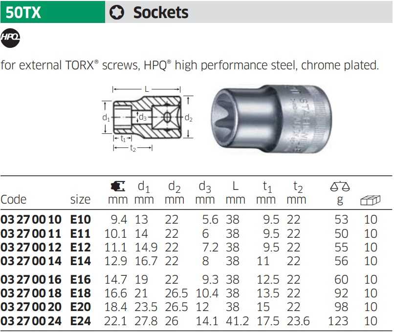 - Khẩu trắng 6 cạnh ngắn Torx Stahlwille 03 27 00 11 thuộc dạng đầu khẩu cơ bản, dạng ngắn có chiều dài: 38 mm. Sử dụng phổ biến cho các thiết bị siết tay, hoặc súng siết có xung lực va đập nhỏ.