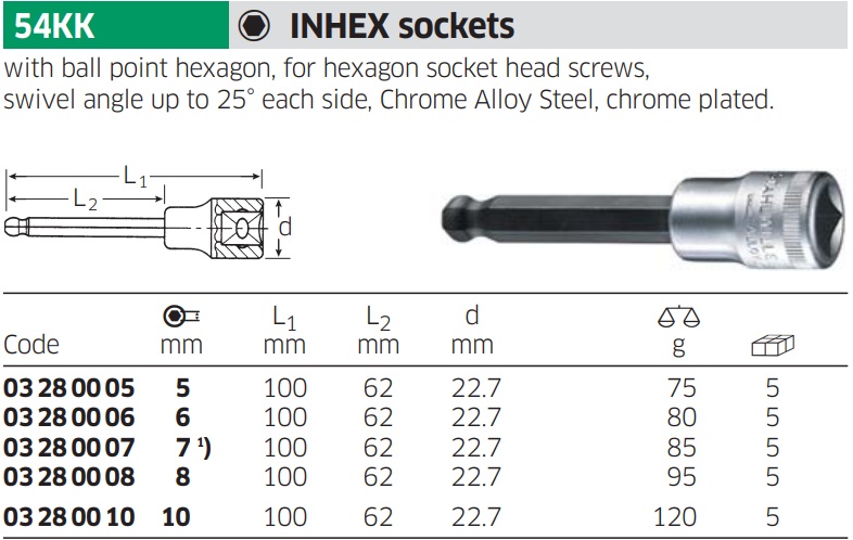 - Khẩu chụp bulong Inhex Stahlwille 03 28 00 10, đầu chụp bulong Stahlwille 03 28 00 10, Inhex Socket Stahlwille 03 28 00 10 là loại đầu khẩu công nghiệp 6 cạnh, chuyên dùng để siết bulong, có size đầu vào vuông 1/2", size đầu ra 10 mm. Đầu chụp bulong Inhex Stahlwille 03 28 00 10 được chế tạo từ thép cường lực có độ dai va đập cao.