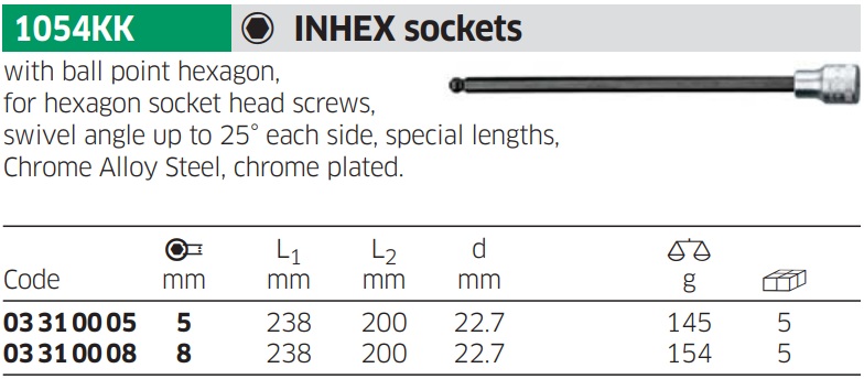 - Khẩu trắng 6 cạnh dài Inhex Stahlwille 03 31 00 05 thuộc dạng đầu khẩu cơ bản, dạng dài có chiều dài: 238 mm. Sử dụng phổ biến cho các thiết bị siết tay, hoặc súng siết có xung lực va đập nhỏ.