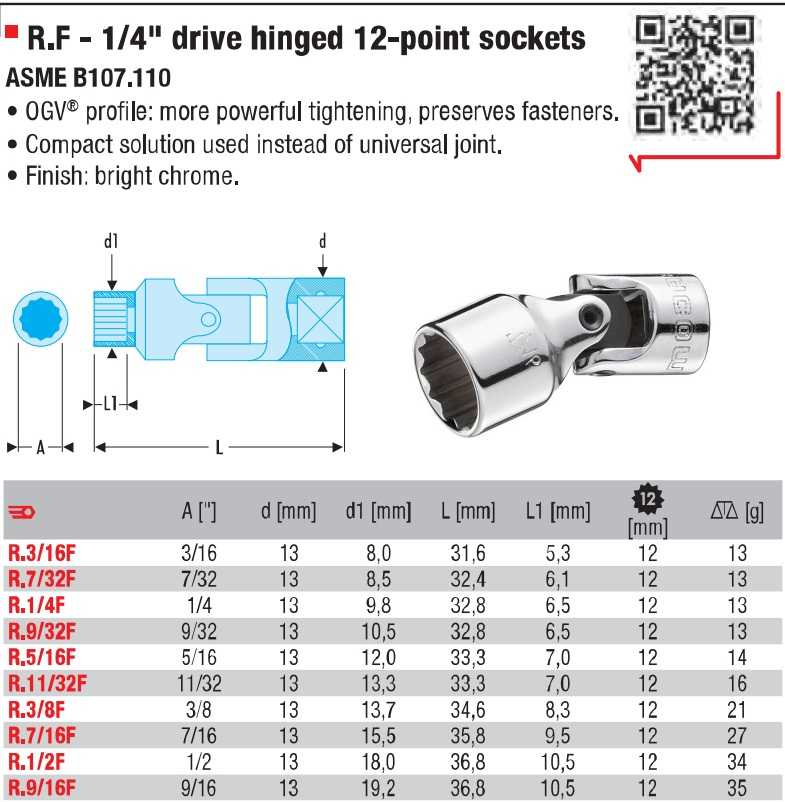 - Khẩu trắng 12 cạnh ngắn Facom R.3/16AF thuộc dạng đầu khẩu cơ bản, dạng ngắn có chiều dài: 31.6 mm. Sử dụng phổ biến cho các thiết bị siết tay, hoặc súng siết có xung lực va đập nhỏ.
