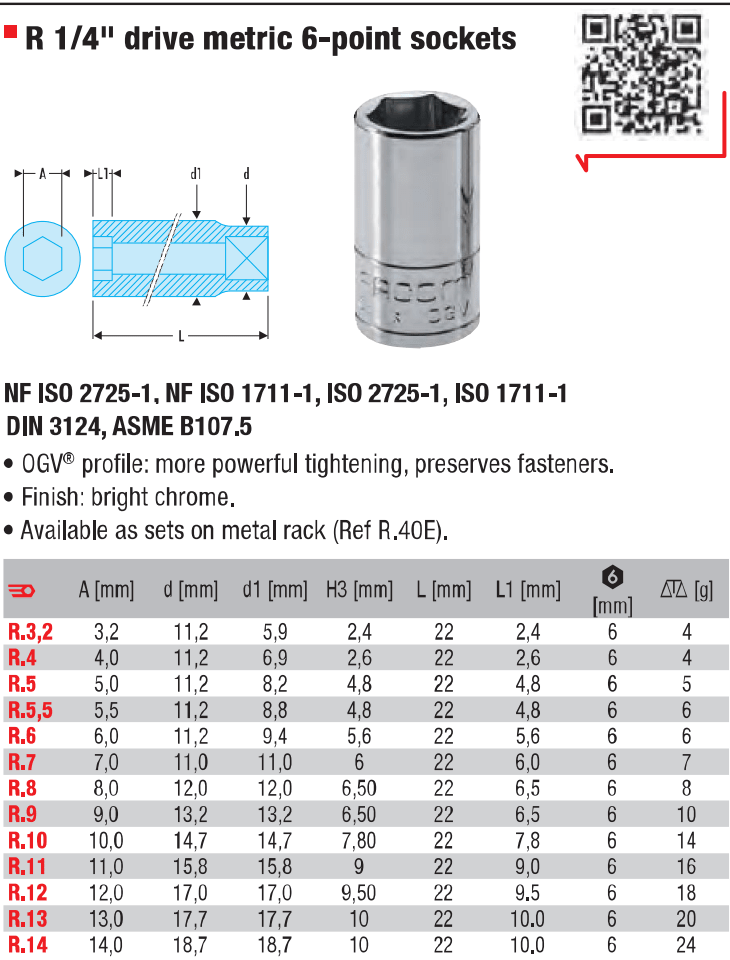 KHẨU CHỤP BULONG FACOM R.5,5 | ĐẦU CHỤP BULONG FACOM R.5,5 | 1/4" | 5.5 mm