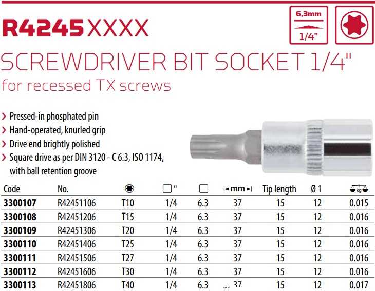 - Khẩu chụp bulong Gedore Red R42451406, đầu chụp bulong Gedore Red R42451406, Gedore Red Socket R42551406 là loại đầu khẩu công nghiệp 6 cạnh, chuyên dùng để siết bulong, có size đầu vào vuông 1/4", size đầu ra T25. Đầu chụp bulong Gedore Red R42451406 được chế tạo từ thép cường lực có độ dai va đập cao.
