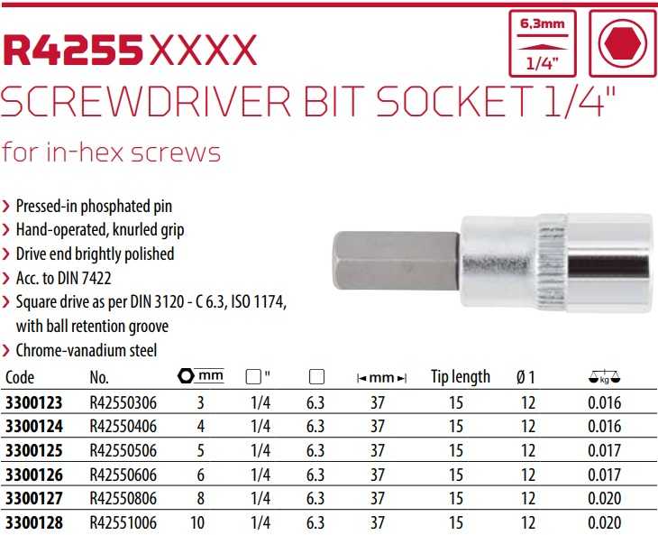 KHẨU CHỤP BULONG Gedore Red R42550306 | ĐẦU CHỤP BULONG Gedore Red R42550306 | 1/4" | 3 mm
