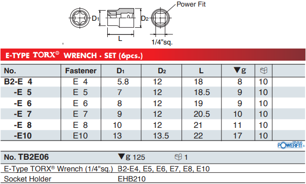 - Khẩu chụp bulong KTC B2-E10, đầu chụp bulong KTC B2-E10, KTC Socket B2-E10: là loại đầu khẩu công nghiệp, chuyên dùng để siết bulong, có size đầu vào vuông 1/4", size đầu ra E10. Đầu chụp bulong KTC B2-E10 được chế tạo từ thép cường lực có độ dai va đập cao.