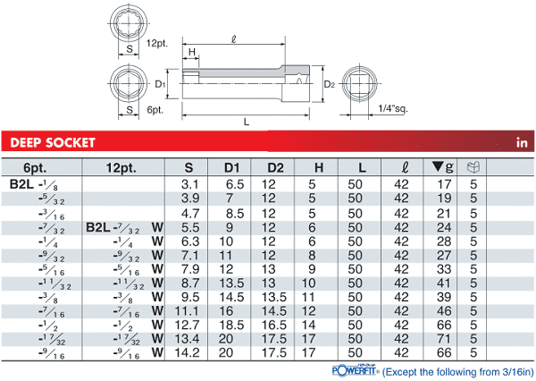 - Khẩu trắng 6 cạnh KTC B2L-5/16 thuộc dạng đầu khẩu cơ bản, dạng dài, có chiều dài: 50 mm. Sử dụng phổ biến cho các thiết bị siết tay, hoặc súng siết có xung lực va đập nhỏ.