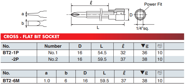 - Khẩu trắng cắm vít đầu 6 cạnh KTC BT2-2P thuộc dạng đầu khẩu cơ bản, dạng ngắn, có chiều dài: 59.5 mm. Sử dụng phổ biến cho các thiết bị siết tay, hoặc súng siết có xung lực va đập nhỏ.