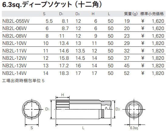 - Khẩu chụp bulong KTC NB2L-13W, đầu chụp bulong KTC NB2L-13W, KTC Socket NB2L-13W: là loại đầu khẩu công nghiệp, chuyên dùng để siết bulong, có size đầu vào vuông 1/4", size đầu ra 13 mm. Đầu chụp bulong KTC NB2L-13W được chế tạo từ thép cường lực có độ dai va đập cao.