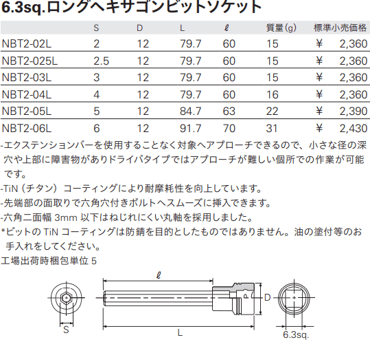 - Khẩu chụp bulong KTC NBT2-03L, đầu chụp bulong KTC NBT2-03L, KTC Socket NBT2-03L: là loại đầu khẩu công nghiệp, chuyên dùng để siết bulong, có size đầu vào vuông 1/4", size đầu ra 3 mm. Đầu chụp bulong KTC NBT2-03L được chế tạo từ thép cường lực có độ dai va đập cao.