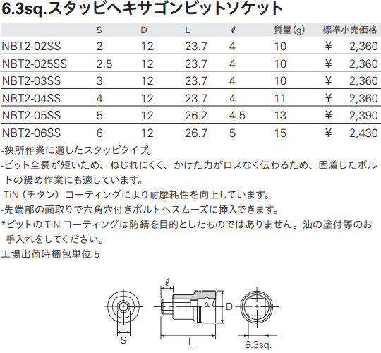 - Khẩu chụp bulong KTC NBT2-04SS, đầu chụp bulong KTC NBT2-04SS, KTC Socket NBT2-04SS: là loại đầu khẩu công nghiệp, chuyên dùng để siết bulong, có size đầu vào vuông 1/4", size đầu ra 4 mm. Đầu chụp bulong KTC NBT2-04SS được chế tạo từ thép cường lực có độ dai va đập cao.