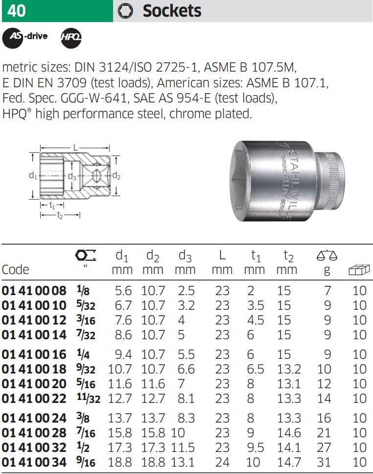 - Khẩu trắng 6 cạnh ngắn Stahlwille 01 41 00 20 thuộc dạng đầu khẩu cơ bản, dạng ngắn có chiều dài: 23 mm. Sử dụng phổ biến cho các thiết bị siết tay, hoặc súng siết có xung lực va đập nhỏ.