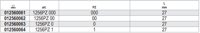 - Đầu vít 4 cạnh Beta 1256PZ 0, Beta Pozidriv head screws 1256PZ 0: là loại đầu cắm vít công nghiệp, chuyên dùng để siết các loại vít 4 cạnh, có size đầu vào lục giác: 4 mm, size đầu ra theo tiêu chuẩn Pozidriv: PZ 0.