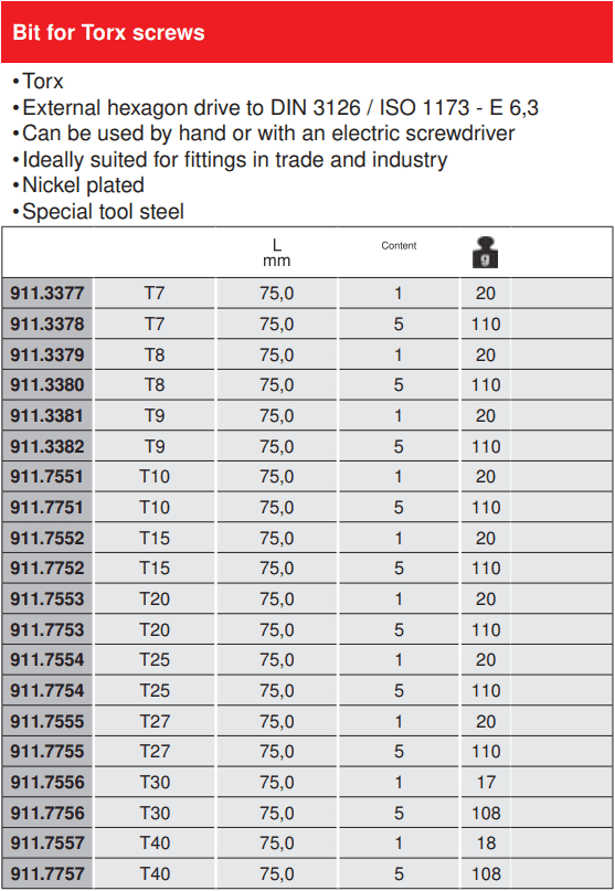 - Đầu vít KS Tools 911.7556, Đầu cắm vít KS Tools 911.7556: là loại đầu cắm vít công nghiệp, chuyên dùng để cắm vào các loại bulong, có size đầu vào vuông 1/4", size đầu ra T30. Đầu cắm vít KS Tools 911.7556 được chế tạo từ thép cường lực có độ dai va đập cao.