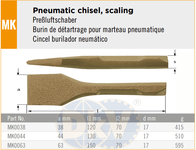 - Đục chống cháy nổ Ampco MK0038 , Ampco non sparking cape chisel MK0038 có bề rộng đục: Ø 38 mm, chiều dài tổng thể 190 mm, chuyên dùng để đục phá trong môi trường yêu cầu tính phòng chống cháy nổ.