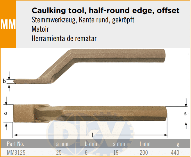 - Đục chống cháy nổ Ampco MM3125, Ampco non sparking cape chisel MM3125 có bề rộng đục: Ø 25 mm, chiều dài tổng thể 200 mm, chuyên dùng để đục phá trong môi trường yêu cầu tính phòng chống cháy nổ.