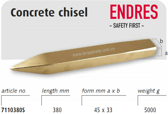 ĐỤC CHỐNG CHÁY NỔ ENDRES 7110380S | ENDRES NON SPARKING CONCRETE CHISEL 7110380S | 45x33 mm