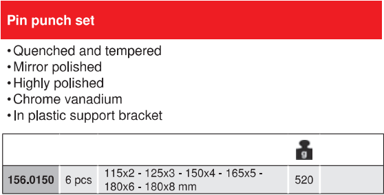 Bộ đột lỗ KS Tools 156.0150, KS Tools pin punch set 156.0150 là bộ đột gồm 6 chi tiết , chuyên dùng để đột, mở rộng lỗ trong công nghiệp.Bộ đột lỗ KS Tools 156.0150 gồm: