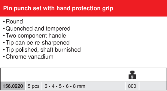 Bộ đột lỗ KS Tools 156.0220 được đựng trong khay thép.Trọng lượng: 800 gram.