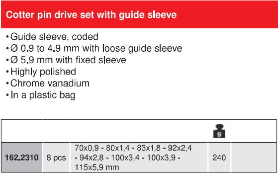 Bộ đột lỗ KS Tools 162.2310 có trọng lượng: 240 gram.