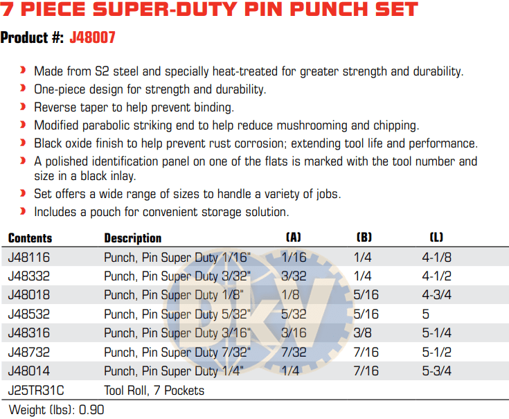 - Đột lỗ dòng J48732 (7/32"): 1 chiếc.