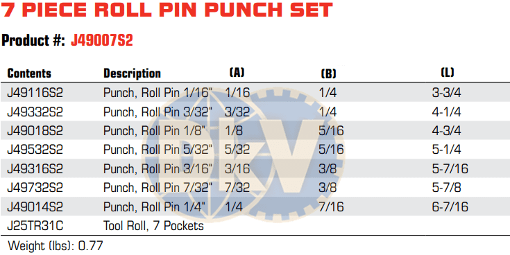 - Đột lỗ dòng J49732S2 (7/32"): 1 chiếc.