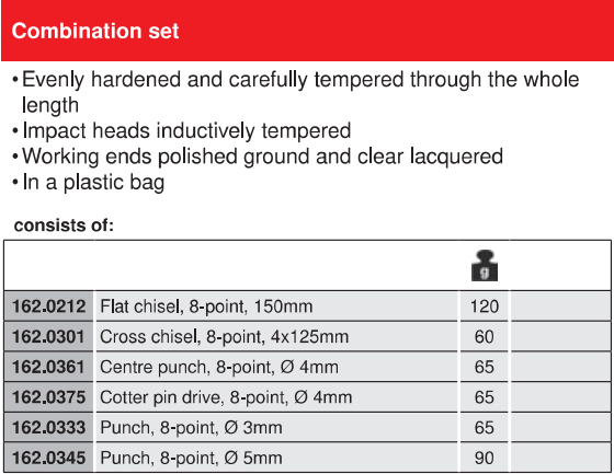 - Đục nhọn 162.0301 (4x125 mm): 1 chiếc.