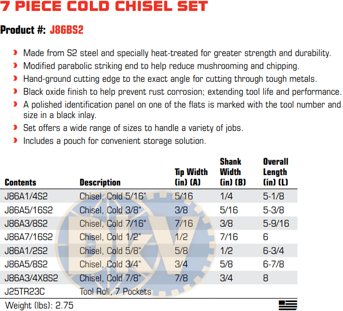 Bộ đột và đục Proto J86BS2, Proto punch & chisel combination sets J86BS2 là bộ gồm 7 chi tiết , chuyên dùng để đột lỗ mở rộng lỗ, đục phá các chi tiết trong công nghiệp.Bộ đột và đục Proto J86BS2 gồm: