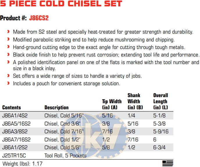 Bộ đột và đục Proto J86CS2, Proto punch & chisel combination sets J86CS2 là bộ gồm 5 chi tiết , chuyên dùng để đột lỗ mở rộng lỗ, đục phá các chi tiết trong công nghiệp.Bộ đột và đục Proto J86CS2 gồm: