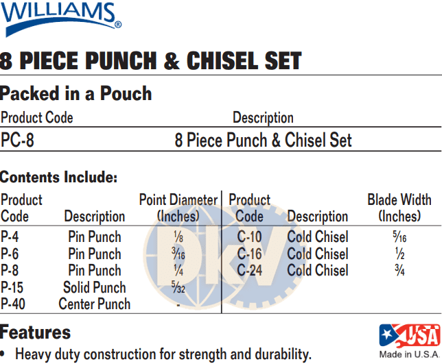 BỘ ĐỘT VÀ ĐỤC SNAP-ON PC-8 | SNAP-ON PUNCH & CHISEL COMBINATION SETS PC-8 | 8 pcs
