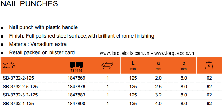 ĐỘT LỖ BAHCO SB-3732-4-125 | BAHCO PIN PUNCH SB-3732-4-125 | Ø 4 mm