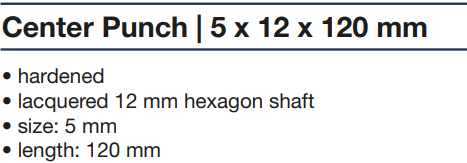 - Đột lỗ BGS 1696, BGS pin punch 1696 có đường kính đầu đột: Ø 5 mm, chiều dài tổng thể: 120 mm, chuyên dùng để đột mở rộng lỗ trong công nghiệp.